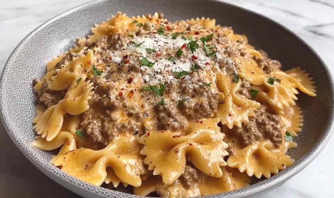 Creamy Parmesan Garlic Beef Pasta