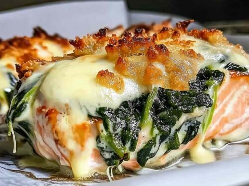 Store any leftovers in an airtight container in the refrigerator for up to 2 days. I recommend this shorter timeframe due to the dairy-based spinach mixture, which doesn’t keep as long as plain fish. The salmon stays surprisingly moist thanks to the protective spinach layer, though it’s best enjoyed fresh from the oven.