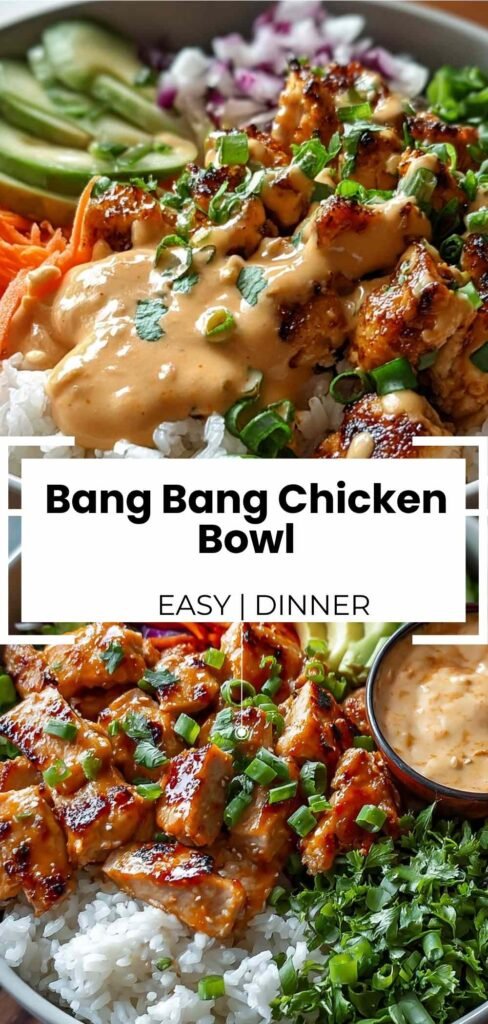 Step 5: Divide the cooked rice among four bowls. Top each bowl with the chicken and vegetable mixture, then drizzle generously with the bang bang sauce. I usually add a sprinkle of sesame seeds or sliced green onions for a restaurant-quality finish. A squeeze of fresh lime adds brightness that really makes the flavors pop.