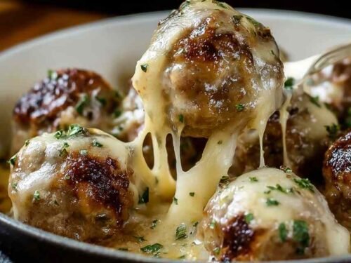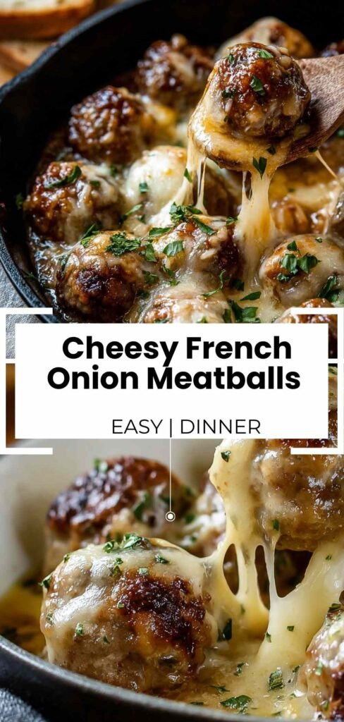 Cheesy French Onion Meatballs bring together two beloved comfort foods into one unforgettable dish. These juicy beef meatballs swimming in caramelized onion sauce and crowned with melted Gruyère cheese deliver restaurant-quality flavor right at home.