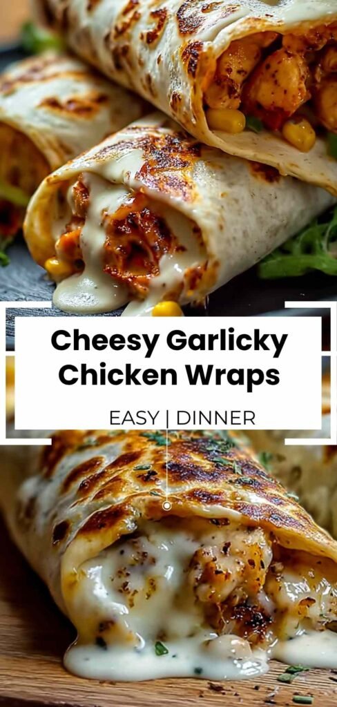 These Cheesy Garlic Chicken Wraps prove that weeknight dinners don’t have to be complicated or time-consuming to taste delicious. With simple ingredients and straightforward steps, you’ll have a meal on the table that brings smiles to everyone’s faces. Give this recipe a try tonight and discover just how easy satisfying dinners can be. Your family will thank you, and you might just find yourself making these wraps on repeat.