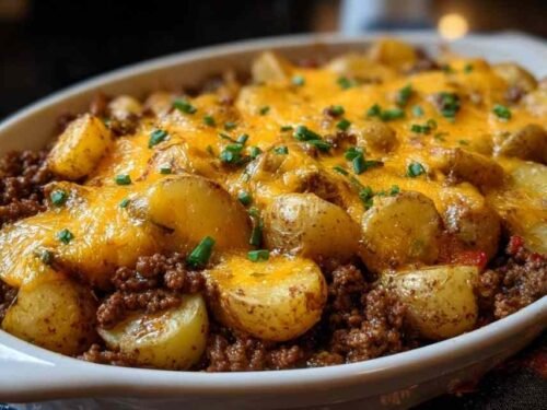 When ground beef hits a hot skillet and starts to sizzle, I know dinner’s going to be good. This cheesy ground beef and potatoes recipe is one of those lifesaver meals that appeared during a particularly chaotic Tuesday when I had exactly three ingredients in my fridge and a family asking “what’s for dinner?” every ten minutes. I threw together what I had, and it’s been in our regular rotation ever since.