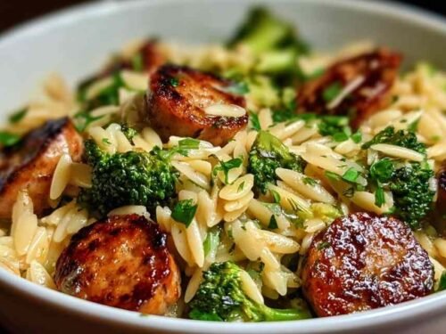 Chicken Sausage and Broccoli Orzo is the dinner recipe I turn to when life gets hectic and takeout starts looking a little too tempting. There’s something magical about a meal that comes together in one pan, tastes like you spent hours on it, but actually takes less time than waiting for delivery. The orzo soaks up all that savory broth while the chicken sausage adds just the right amount of flavor without any heavy sauces weighing things down.