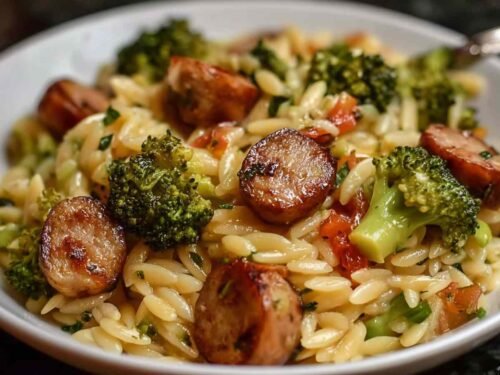 There’s something deeply satisfying about a one-pot meal that delivers comfort, flavor, and nutrition in about 30 minutes. Chicken Sausage and Broccoli Orzo has become my weeknight lifesaver when everyone’s hungry and time is short. The first time I made this dish, I was skeptical that something so simple could taste this good, but watching the orzo absorb all those savory flavors from the browned sausage and garlic proved me wrong.