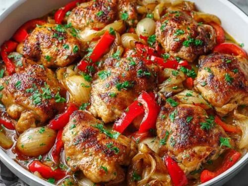I still remember the first time I made this for my family on a busy Wednesday night. The kitchen filled with the aroma of garlic and vinegar, and my kids actually stopped what they were doing to ask what was cooking. That’s when I knew this recipe was a keeper. What makes Chicken Scarpariello special is how it balances comfort and brightness in every bite. The crispy-skinned chicken pairs perfectly with the punch of cherry peppers and a splash of lemon, while sweet bell peppers round out the heat. It’s the kind of dish that tastes like you spent hours cooking, but comes together in about 50 minutes. Plus, everything happens in one pan, which means less cleanup and more time with your family.