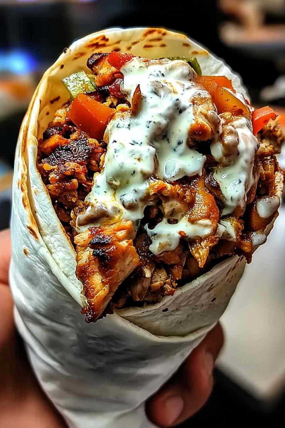 - Warm your pita bread briefly on the grill or in a dry skillet for about 30 seconds per side until soft and pliable. Assemble by layering sliced chicken, fresh vegetables, and pickles on the pita, then drizzle generously with the creamy garlic sauce. Fold and serve immediately while everything is warm.