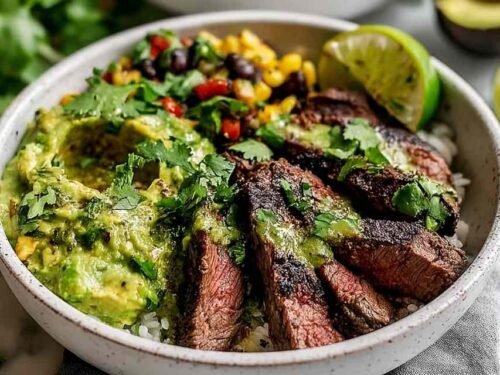 Cilantro Lime Steak Bowls are the kind of dinner that looks fancy but comes together faster than you’d think. Juicy marinated steak, fluffy rice, and colorful fresh toppings create a restaurant-quality meal right in your own kitchen.
