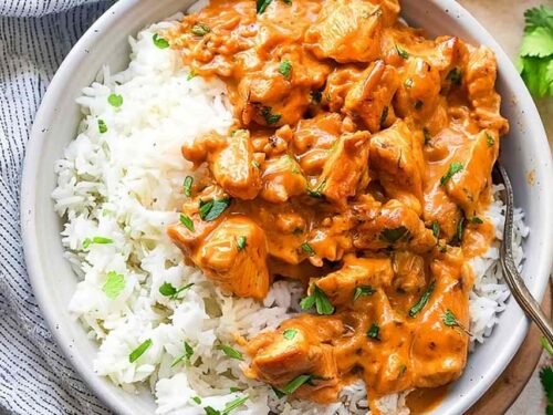 I recommend having all your ingredients prepped before you start cooking since this recipe moves quickly once you begin. Make sure to cook your rice separately while preparing the chicken so everything is ready at the same time. Here’s how to create perfectly tender chicken in a silky coconut sauce.