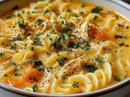 Crack Chicken Noodle Soup is the kind of dinner that makes everyone stop what they are doing and come to the table fast. It’s creamy, cheesy, packed with tender shredded chicken and smoky crumbled bacon, all tucked into a rich broth with soft egg noodles. I made this on a freezing Tuesday night when my family needed something filling and warm, and the pot was empty before I even sat down.