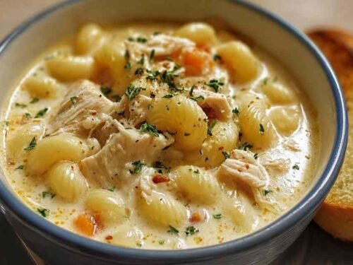 I first made this soup on a chilly autumn night when my kids requested both mac and cheese and chicken noodle soup for dinner. Instead of choosing one, I combined them, and it quickly became our family’s most-requested comfort meal. The velvety cheese sauce coats tender macaroni while chunks of juicy chicken make it satisfying enough for even the heartiest appetites. It’s rich without being heavy, simple enough for weeknight cooking, and fancy enough to serve guests. Whether you’re feeding picky eaters or comfort food lovers, this soup delivers every time.