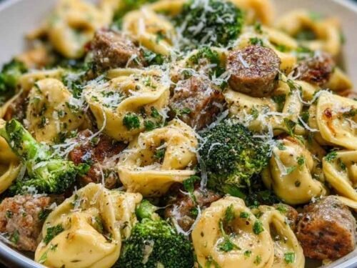 This Creamy Garlic Parmesan Tortellini with Sausage and Broccoli transforms simple ingredients into a restaurant-quality meal that’s ready in about 20 minutes. When weeknight chaos hits and everyone’s hungry, this one-pan wonder delivers creamy, cheesy comfort without the stress. I stumbled upon this recipe during a particularly hectic Tuesday evening when my pantry was nearly bare but my family was ravenous. What started as a “throw together what we have” experiment became our most requested dinner.