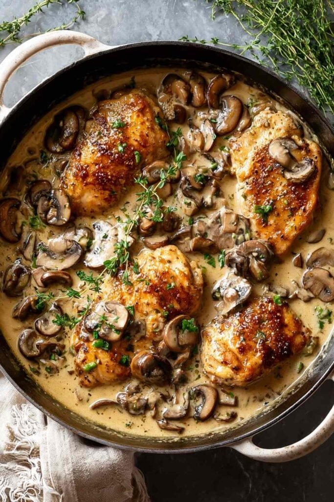 Step 3: In the same skillet (don’t wipe it out—those brown bits are flavor gold), add the chicken cutlets. Sear for 3-4 minutes per side until golden brown and the internal temperature reaches 165°F. The chicken should release easily from the pan when it’s ready to flip. Transfer to the plate with the mushrooms and let rest for 2-3 minutes.
