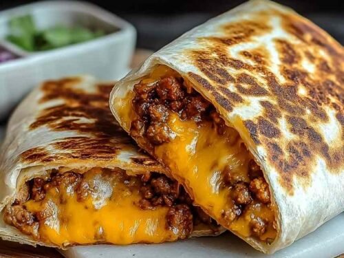 The easy grilled cheese burrito brings Taco Bell’s cult-favorite indulgence right to your kitchen with crispy, golden tortillas wrapped around layers of seasoned beef, melted cheese, and tangy chipotle sauce.