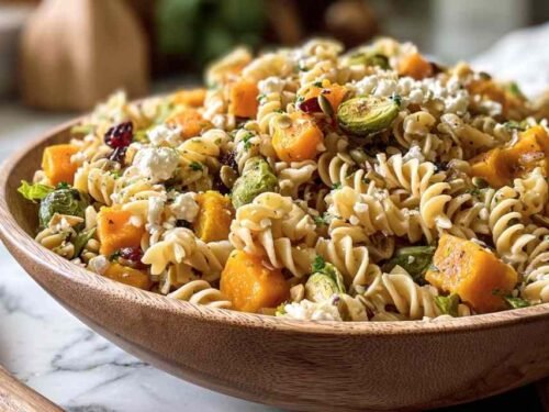 This Fall Pasta Salad brings together roasted butternut squash, crispy Brussels sprouts, and sweet apples in one colorful bowl that tastes like autumn on a plate. I started making this recipe three years ago when I needed something fresh yet substantial for a friendsgiving potluck, and it quickly became my most-requested contribution to every fall gathering.