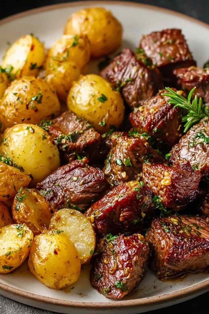 Juicy seared steak bites and crispy-edged baby potatoes tossed in rich garlic butter sauce. A quick one-pan dinner ready in 30 minutes.