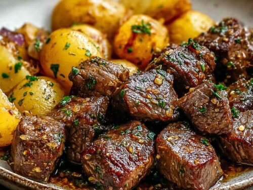 This garlic butter steak bites and potatoes recipe transforms affordable sirloin into a restaurant-quality meal that’s ready in just 30 minutes. The perfectly seared steak paired with golden, crispy potatoes creates the ultimate comfort food experience.
