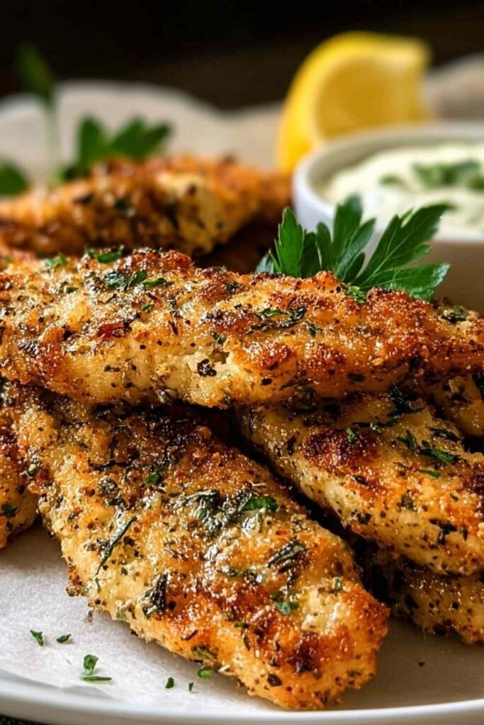 Lemon Rice Pilaf: Fluffy rice cooked with chicken broth, fresh lemon zest, and a touch of butter creates a light, aromatic base that soaks up the chicken’s flavorful juices beautifully. For a heartier option, try serving these tenders over high-protein turkey pasta with ricotta for an extra satisfying meal.