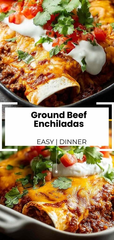 Delicious Ground Beef Enchiladas with savory seasoned beef, zesty enchilada sauce, and melted cheese wrapped in soft tortillas. Family-friendly dinner ready in 45 minutes.