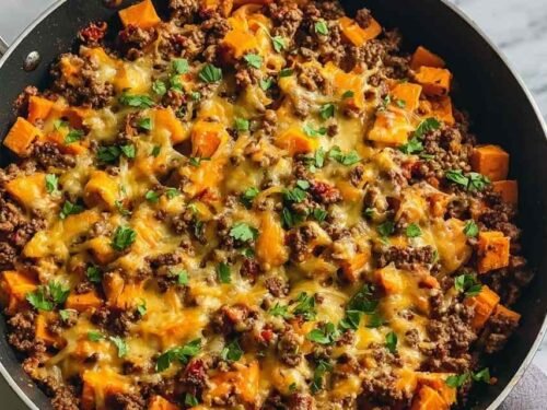 Cheesy Tex-Mex Ground Beef & Sweet Potato Skillet