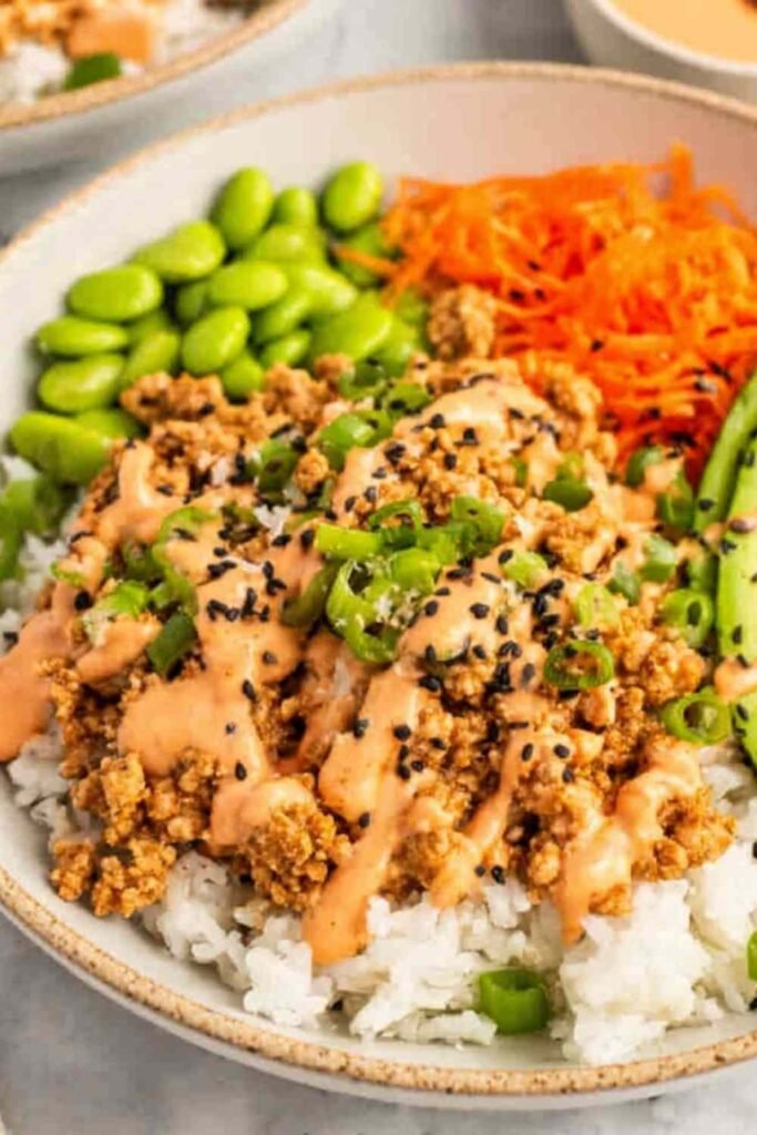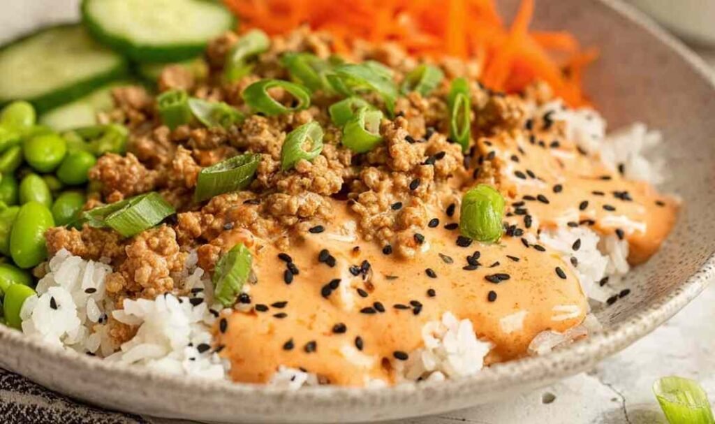 Ground Turkey Rice Bowls with Bang Bang Sauce
