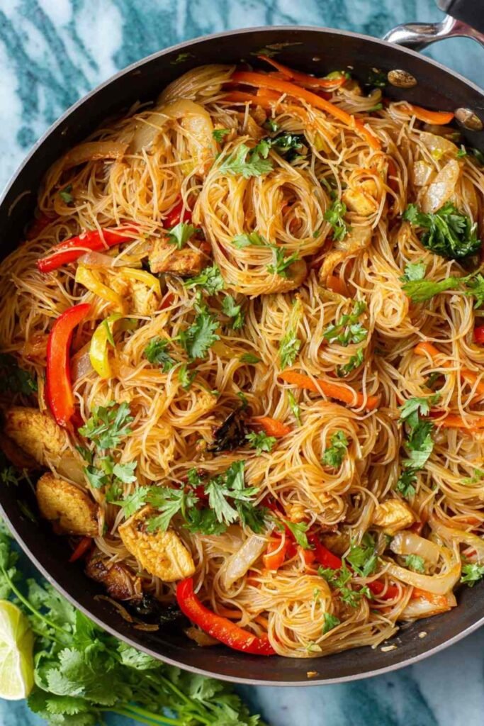 I always start by prepping all my ingredients before I heat the pan. This makes the cooking process smooth and stress-free, especially since everything moves quickly once you start. My go-to for vermicelli noodles is any brand labeled “rice stick noodles” – they cook perfectly every time without becoming mushy.
