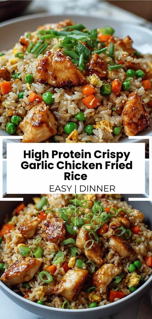 High Protein Crispy Garlic Chicken Fried Rice turns leftover rice into a restaurant-quality dinner loaded with tender chicken and vegetables. I started making this on Thursday nights when I realized our fridge always had leftover rice from earlier in the week.