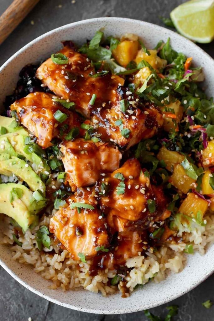 Honey Glazed Salmon Rice Bowls