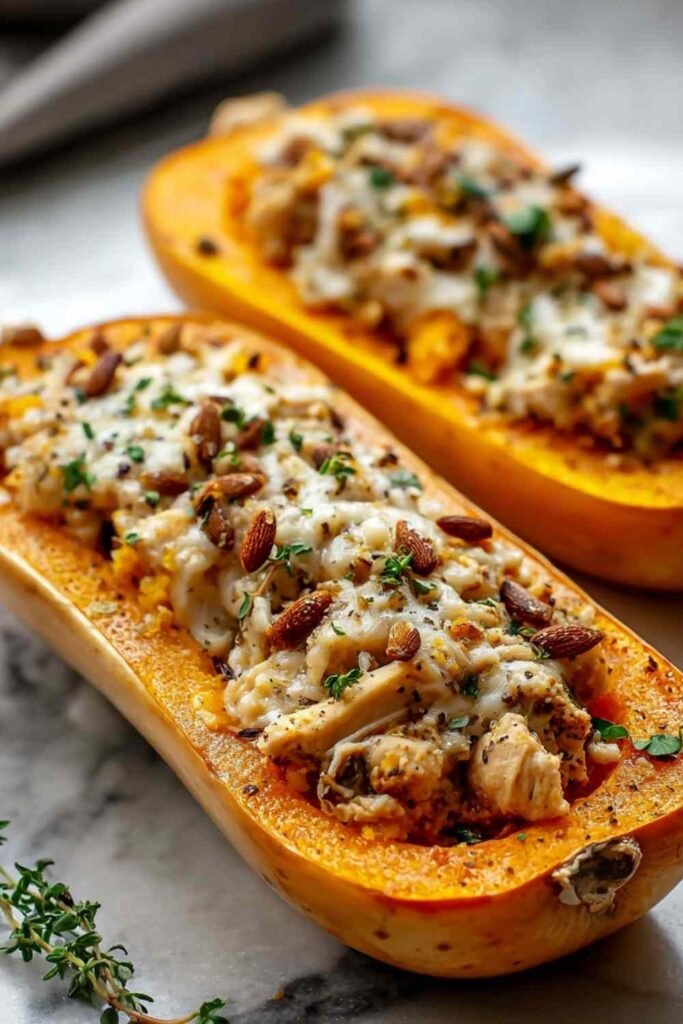 Honey Roasted Butternut Squash Stuffed with Chicken