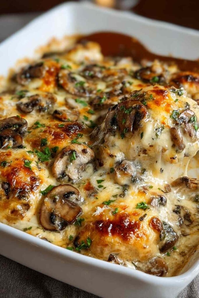 Looking at this rich, comforting keto casserole recipe, I notice you’re looking for creamy chicken comfort without the carbs. This low-carb dinner brings together tender chicken, earthy mushrooms, and melted cheese in one satisfying dish that keeps you full and on track with your goals.