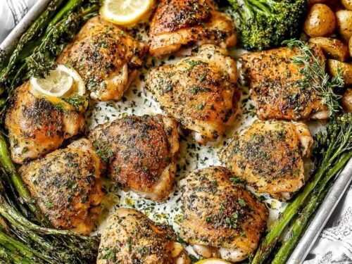 Lemon Garlic Chicken Thighs might just be the most reliable dinner in my weekly rotation. This recipe gives you juicy, flavor-packed chicken from a marinade that takes about five minutes to throw together, plus potatoes and broccoli cooked right on the same pan. As a working parent who needs dinner on the table without a big production, this one earns its spot every single week.
