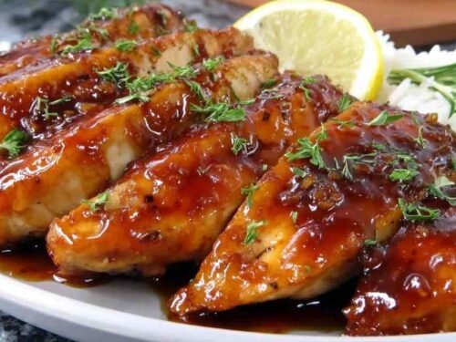 Step 6: Transfer the chicken to a serving platter and drizzle any remaining glaze over the top. Garnish with fresh parsley and serve immediately while the glaze is still warm and glossy.