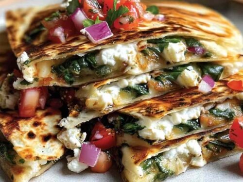 I stumbled onto Mediterranean quesadillas during one of those chaotic weeknights when everyone was starving and takeout wasn’t an option. These crispy tortillas packed with spinach, tangy feta, melty mozzarella, and sweet red onion have become my weeknight lifesaver. What I love most is how each quesadilla takes just 15 minutes from start to finish, though I usually make all four back-to-back for about 40 minutes of total cooking time.
