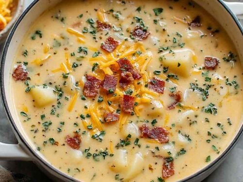 I have made this soup more times than I can count, and a few ingredient choices make a real difference. I always use freshly cooked bacon — the crunch and smoky flavor you get from cooking it yourself beats packaged bacon bits every single time. For the cheese, my preference is to shred it straight from a block rather than buying pre-shredded, since it melts much more smoothly into the broth.