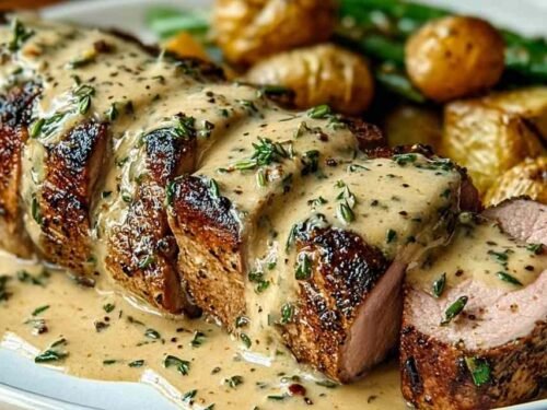 When reheating, place sliced pork in a baking dish with a splash of chicken broth, cover with foil, and warm in a 350°F oven for about 15 minutes. Reheat the sauce separately on the stovetop over low heat, stirring occasionally to prevent breaking. This gentle approach keeps the meat tender and the sauce silky.