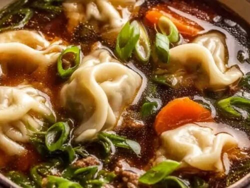 Potsticker soup is my go-to dinner when everyone is cold, tired, and hungry and I need something on the table fast. A fragrant ginger and garlic broth, plump beef dumplings, and fresh greens all come together in a single pot in about 30 minutes. My kids started calling it “dumpling night” and it gets requested more often than almost anything else I make during the colder months.