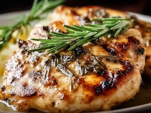 Elegant chicken breasts marinated in Dijon mustard and fresh rosemary, then baked in a creamy garlic wine sauce. Perfect for dinner parties or special meals.