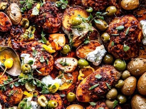 There’s something magical about a dinner that comes together on one pan, especially when it delivers bold Mediterranean flavors without the fuss. This Sheet Pan Lemon Balsamic Chicken and Potatoes combines tender chicken with crispy potatoes, topped with herbed olives and creamy feta Tzatziki that’ll have everyone asking for seconds.