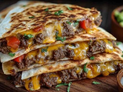 Crispy, cheesy quesadillas made by pressing seasoned ground beef directly into flour tortillas, then grilling with melted cheese until golden brown. A fun burger-quesadilla hybrid ready in 25 minutes.