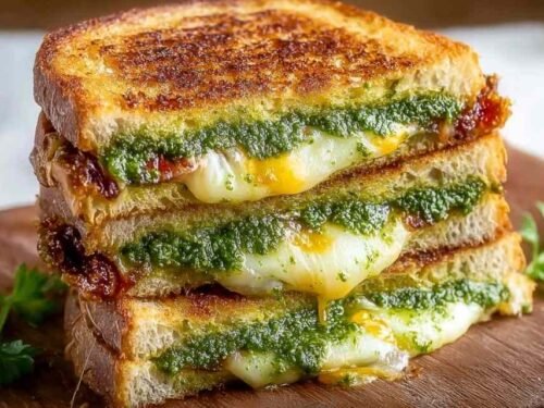 The best grilled cheese I ever made happened on a random Tuesday after my daughter’s soccer practice. We walked into the house exhausted and starving, and I spotted leftover pesto in the fridge. That simple decision to elevate our usual grilled cheese transformed a basic weeknight staple into something that had my kids asking for seconds. This Sourdough Pesto Grilled Cheese combines melty fresh mozzarella, vibrant basil pesto, and crispy bacon between golden, buttery sourdough slices.