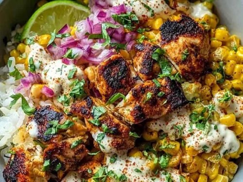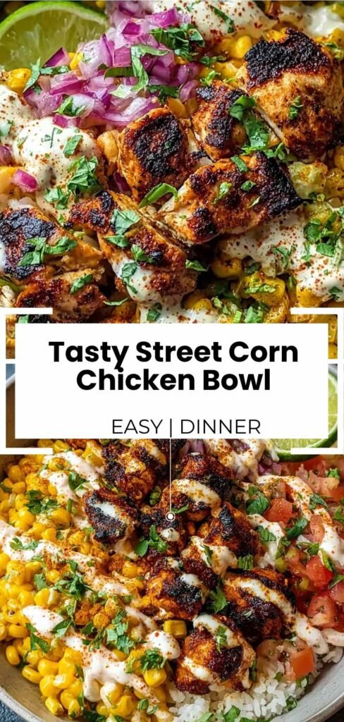 I’m excited to share this street corn chicken bowl with you. It’s the recipe I turn to when I need big, bold Mexican flavors on the table fast. The creamy, charred corn paired with juicy chicken is so satisfying that my family actually requests this over takeout.