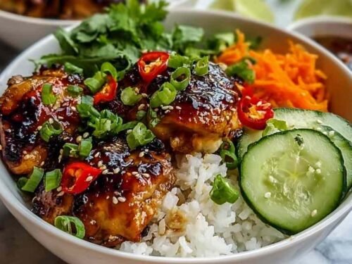 For successful meal prep, prepare the glazed chicken and rice ahead of time, but keep fresh vegetables and garnishes separate until you’re ready to eat. This preserves that wonderful contrast between warm components and crisp, fresh toppings throughout the week.